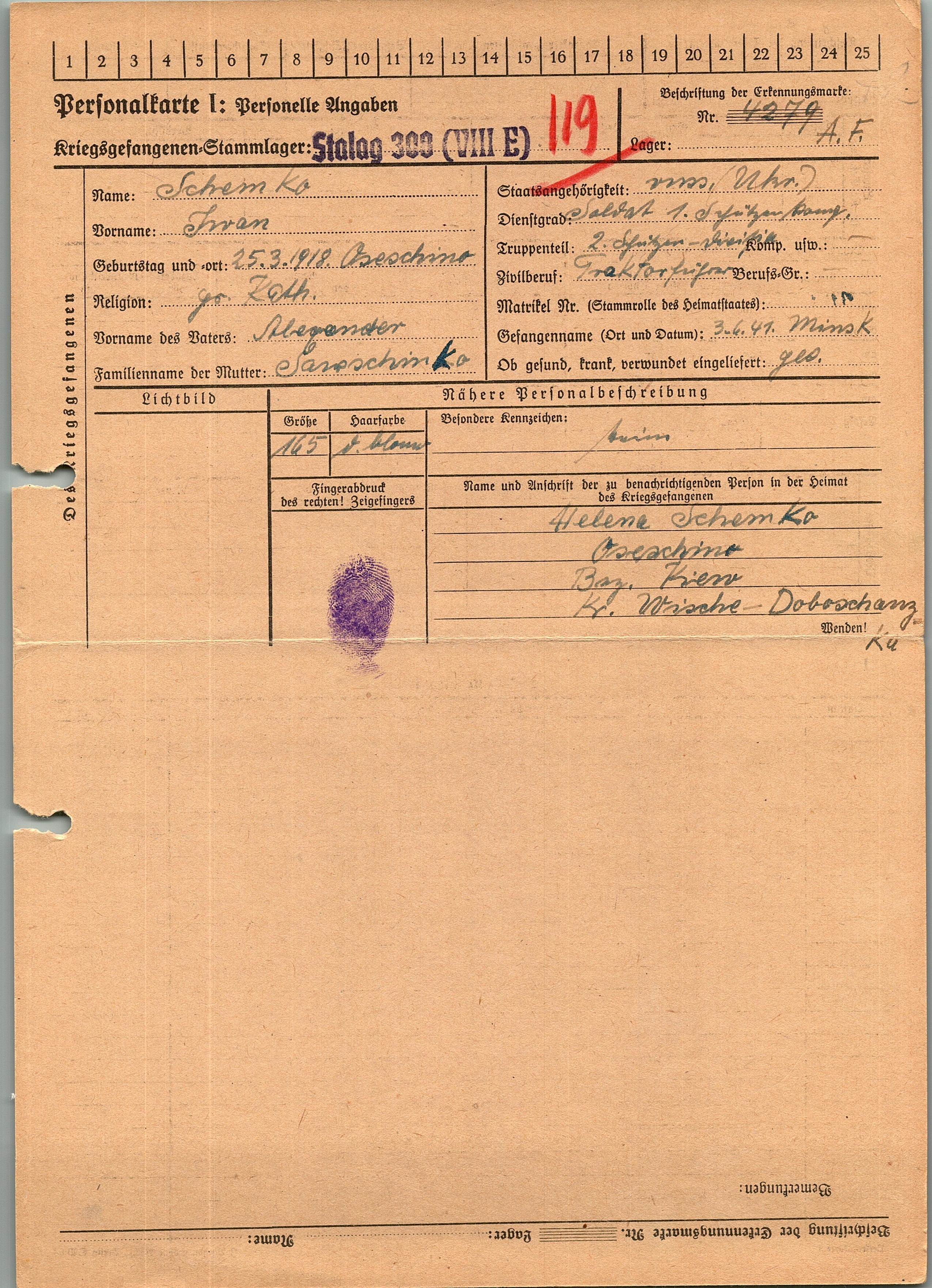 Военнопленные, трофейные карточки. Киевская обл.