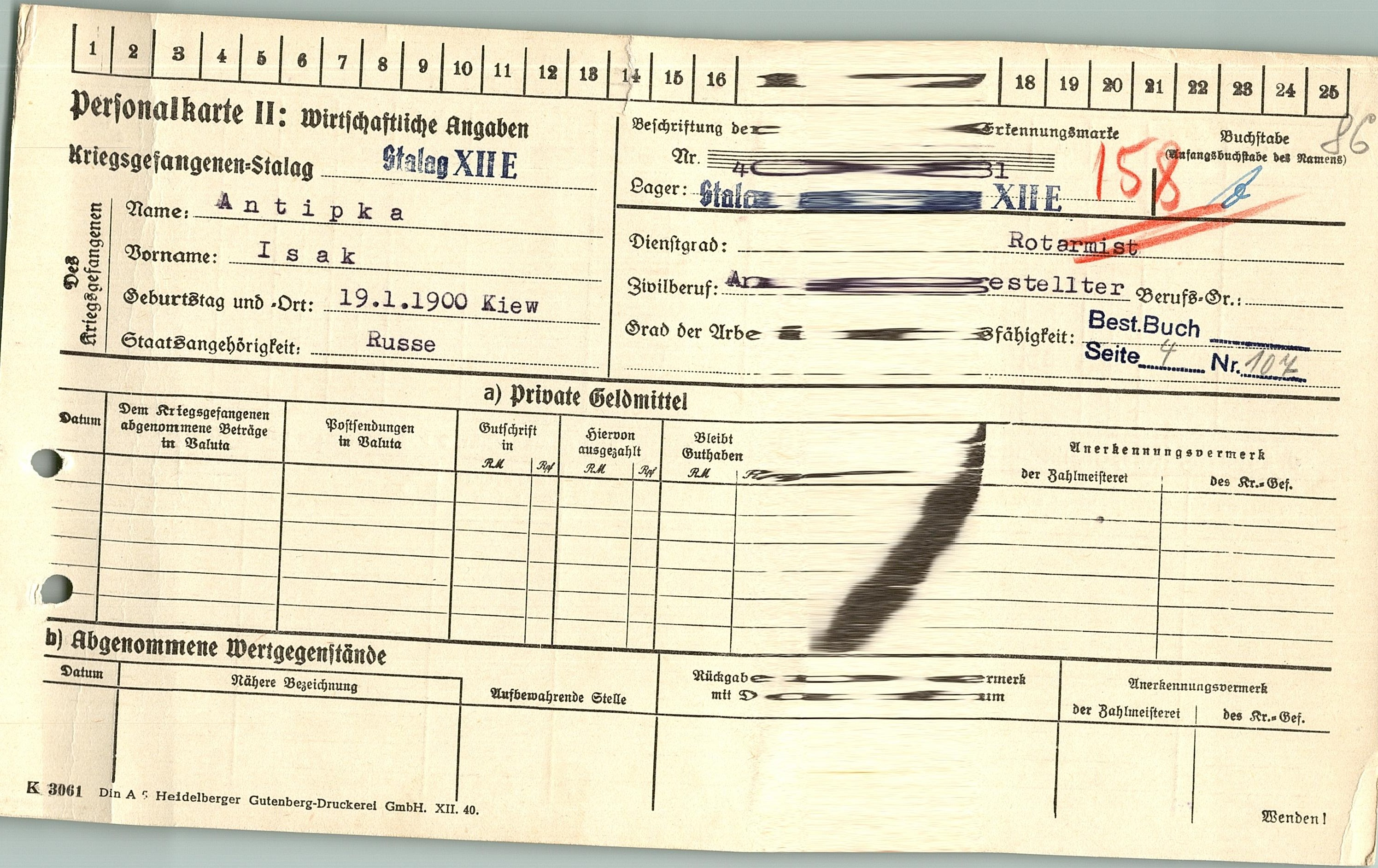 Военнопленные, трофейные карточки. Киевская обл.