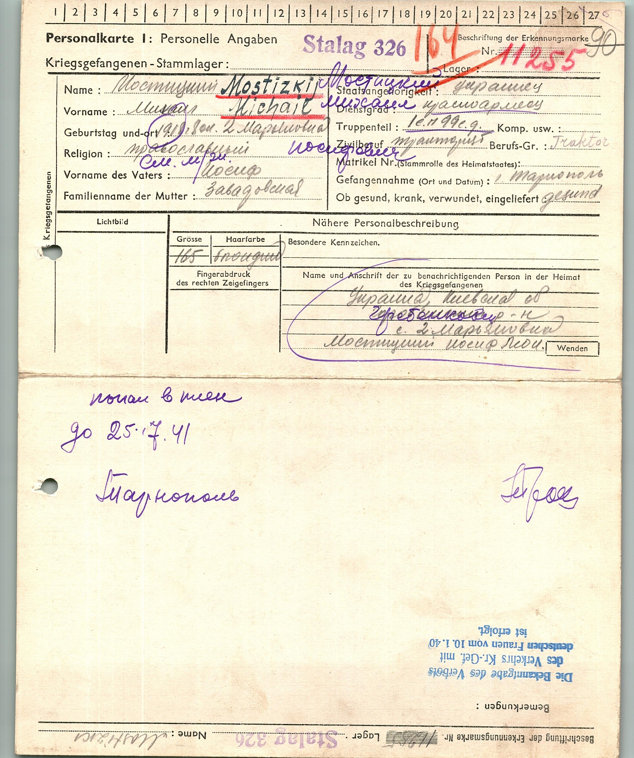 Военнопленные, трофейные карточки. Киевская обл.