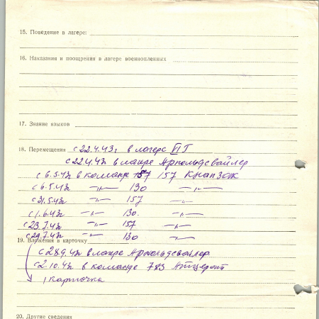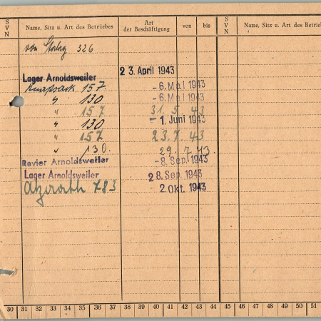 С 28.09.1943 г. в лагере Арнольдсвейлер. С 02.10.1943 г. в команде 783 Атцерот.