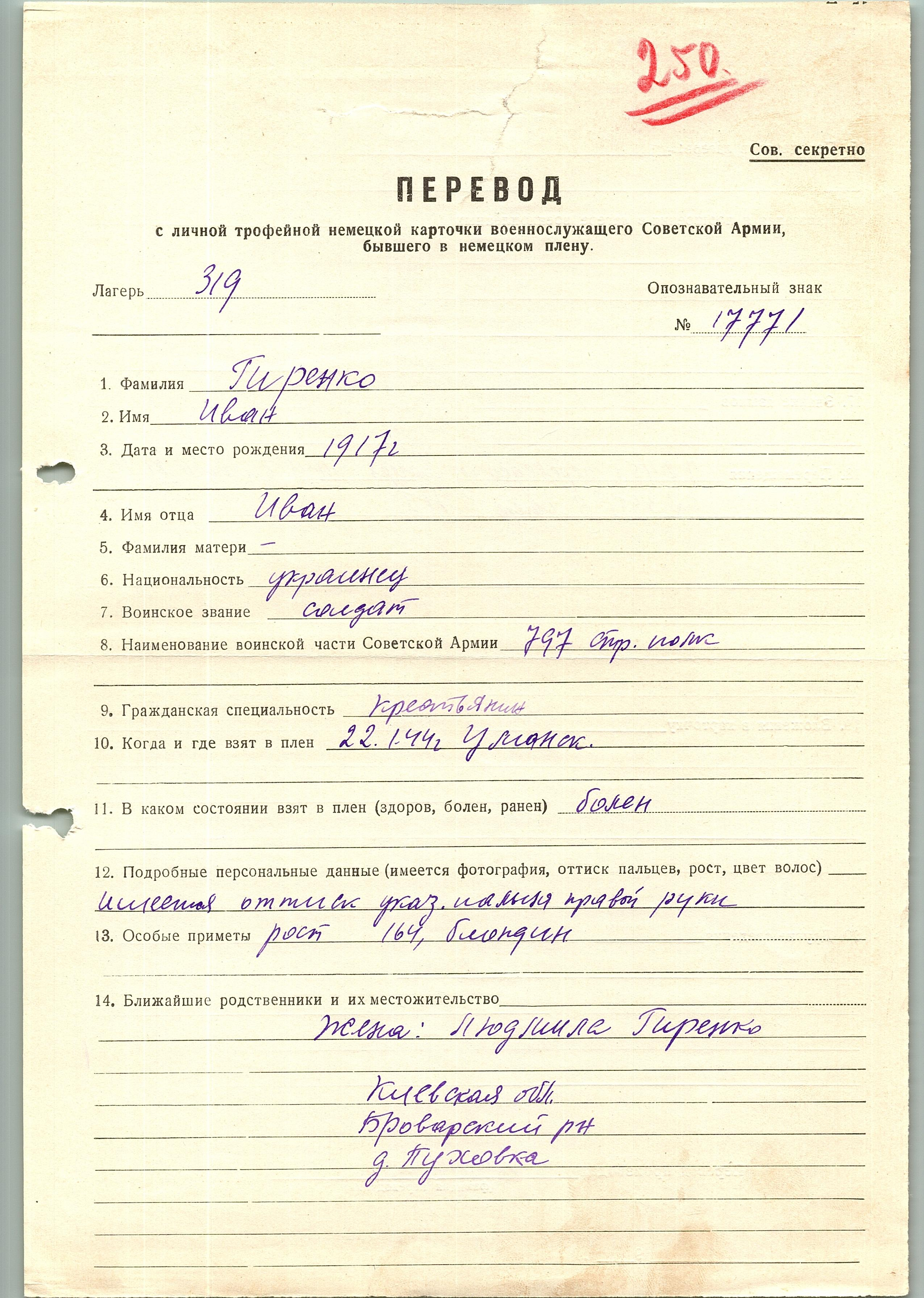 Военнопленные, трофейные карточки. Киевская обл.