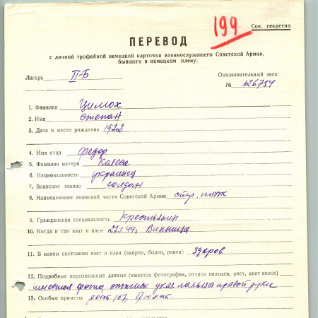 Цимох Степан Фёдорович, 1922 г.р. Рядовой, стрелковый полк. Взят в плен 27.01.1944 г., г. Винница. Шталаг II-Б.