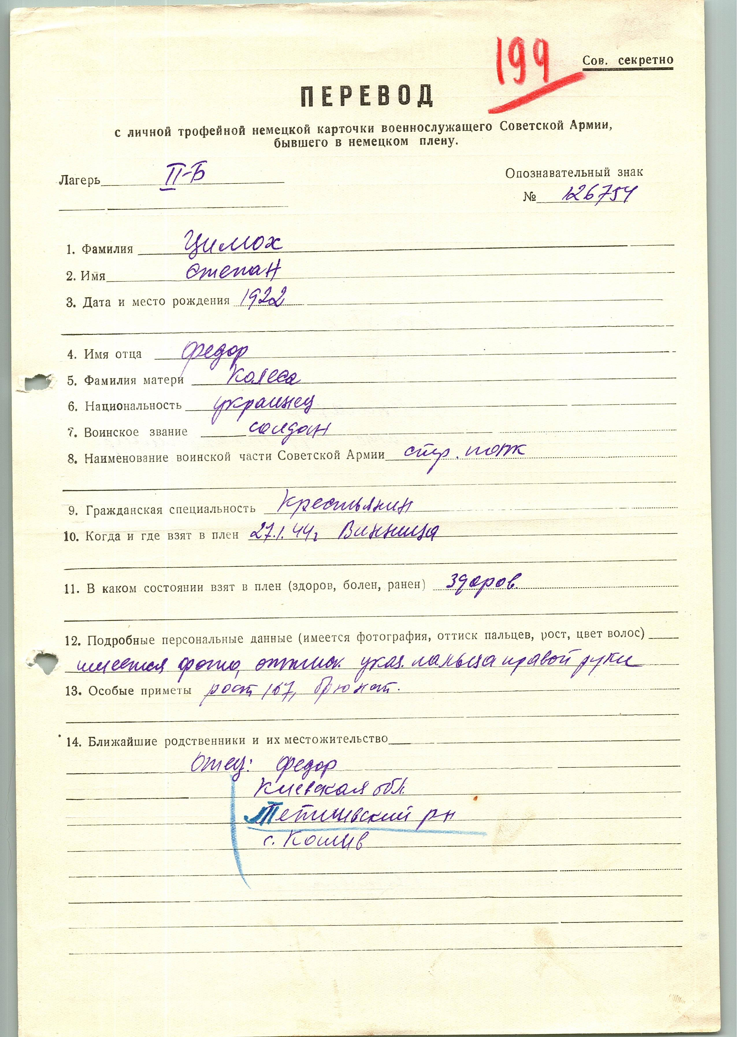 Военнопленные, трофейные карточки. Киевская обл.