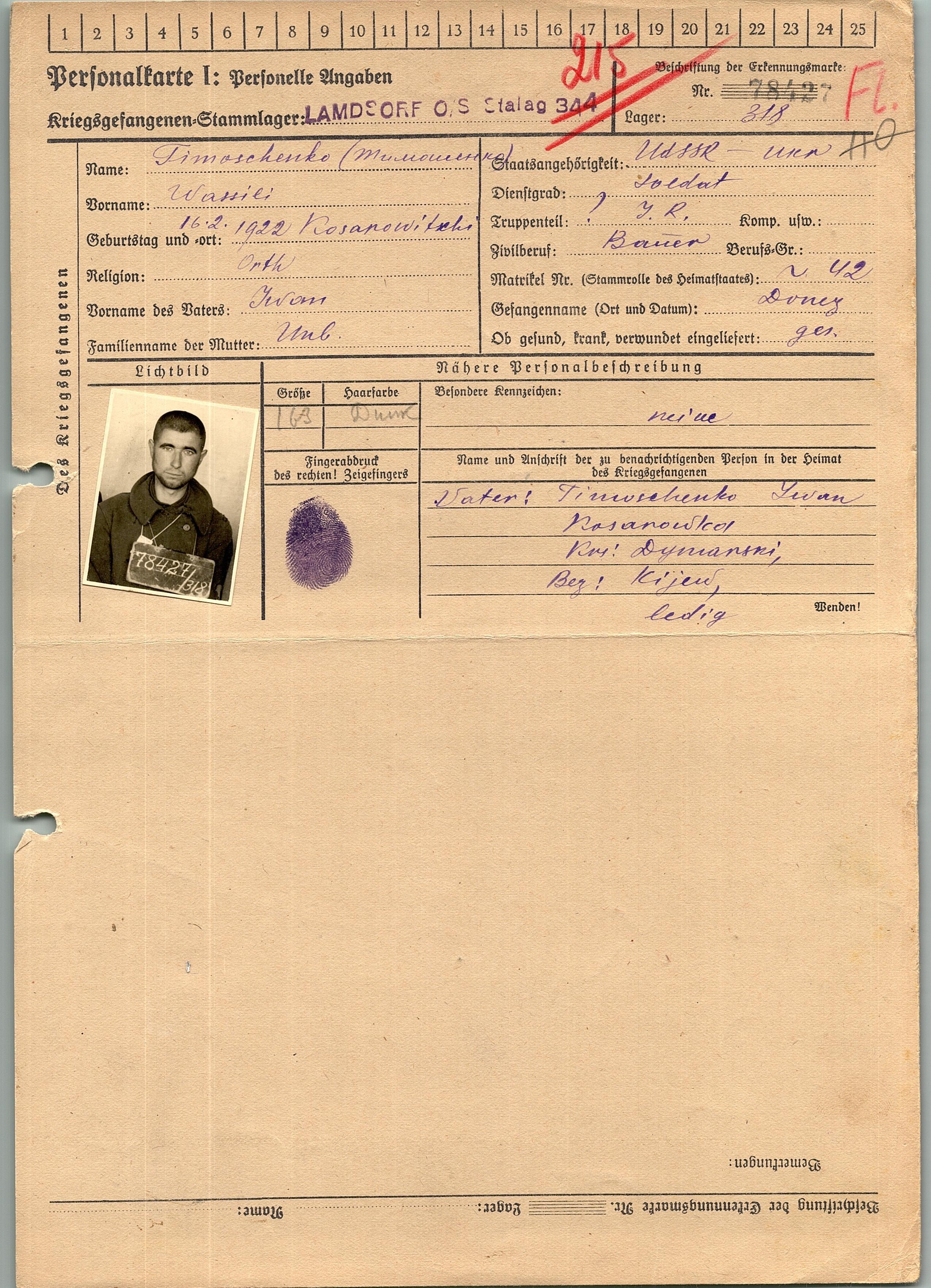 Военнопленные, трофейные карточки. Киевская обл.