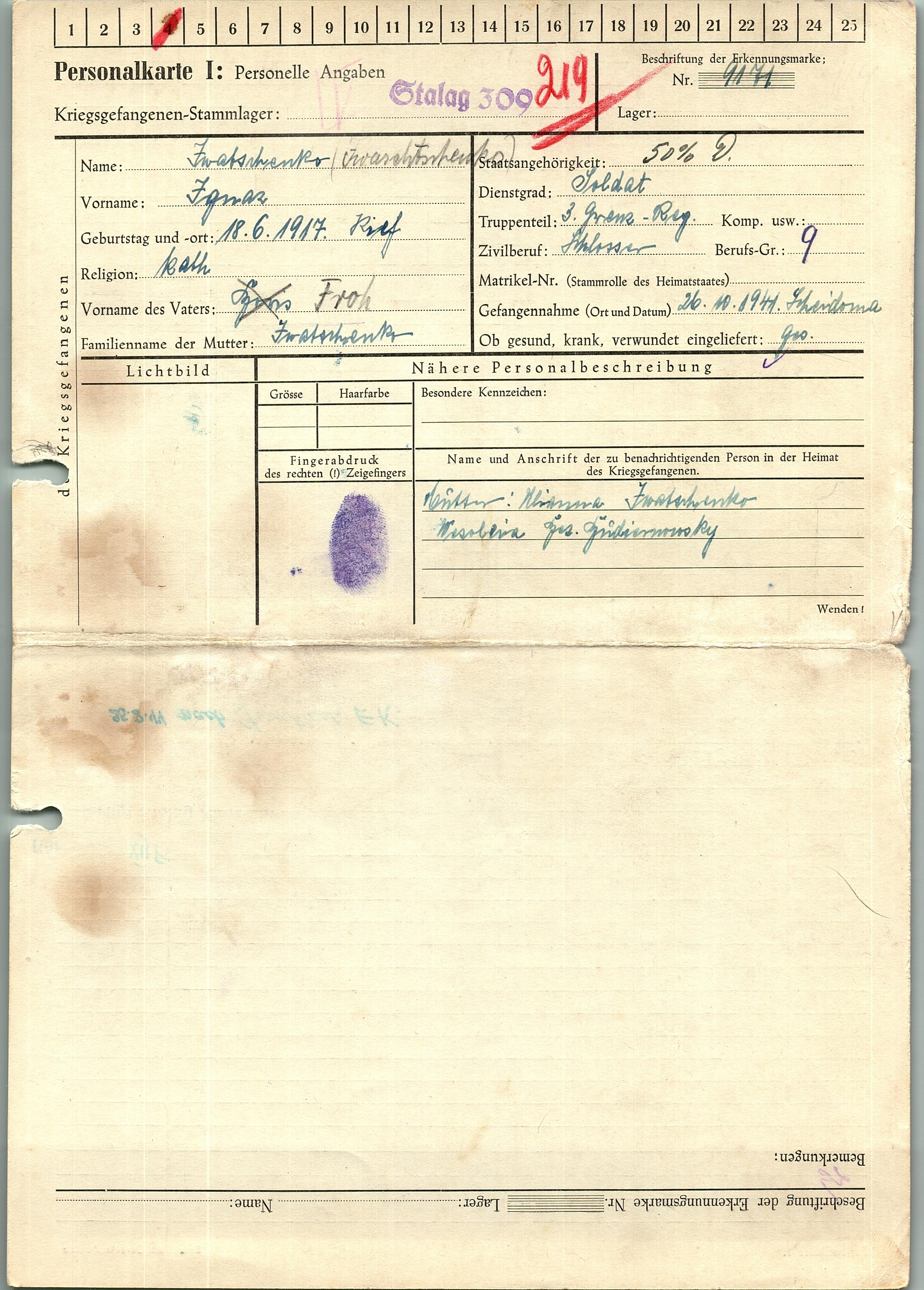 Военнопленные, трофейные карточки. Киевская обл.