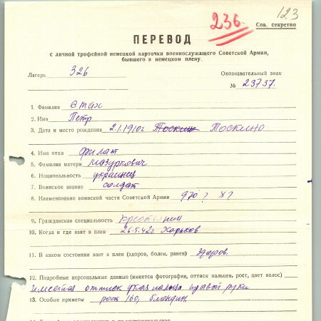 Стах Пётр Филатович, 02.01.1910 г.р., Тоскино. Взят в плен 26.05.1942 г., г. Харьков. Шталаг 326.