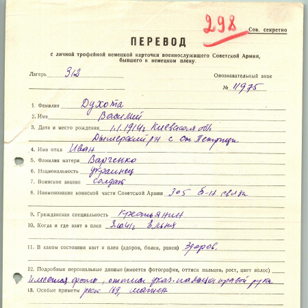 Духота Василий Иванович, 01.01.1914 г.р., с. Ст. Петровцы Вышгородский р-н Киевская обл. Рядовой, 305 б-н связи. Взят в плен 30.10.1941 г., Ельня.