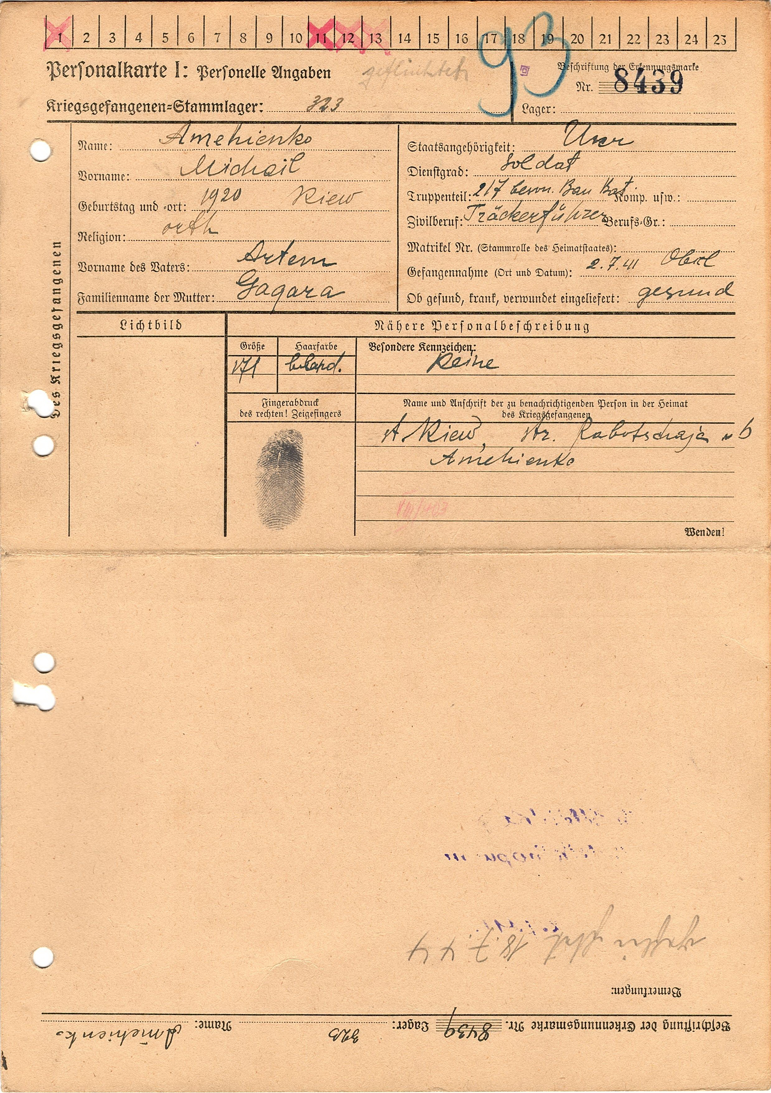 Военнопленные, трофейные карточки. Киевская обл.