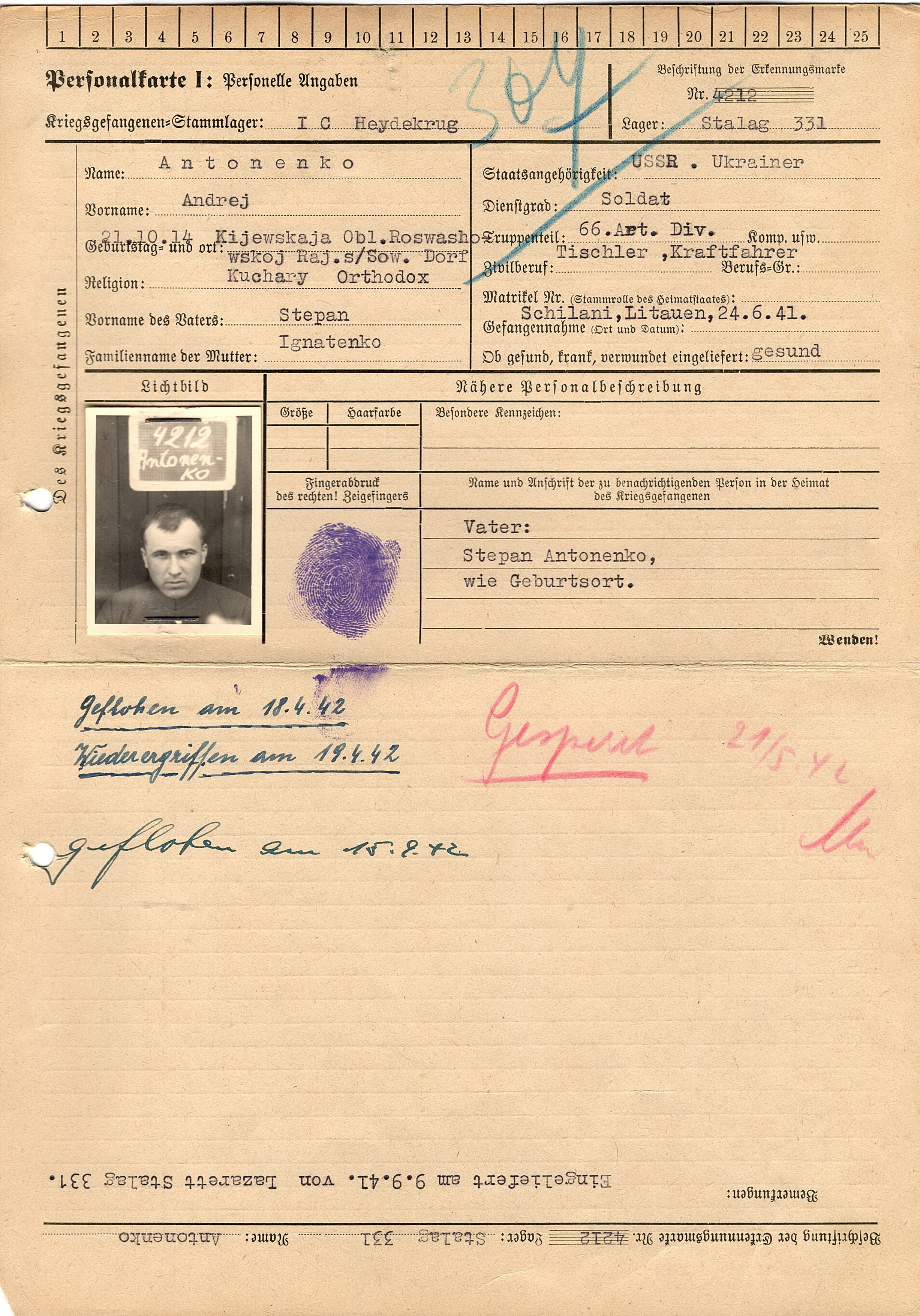 Военнопленные, трофейные карточки. Киевская обл.