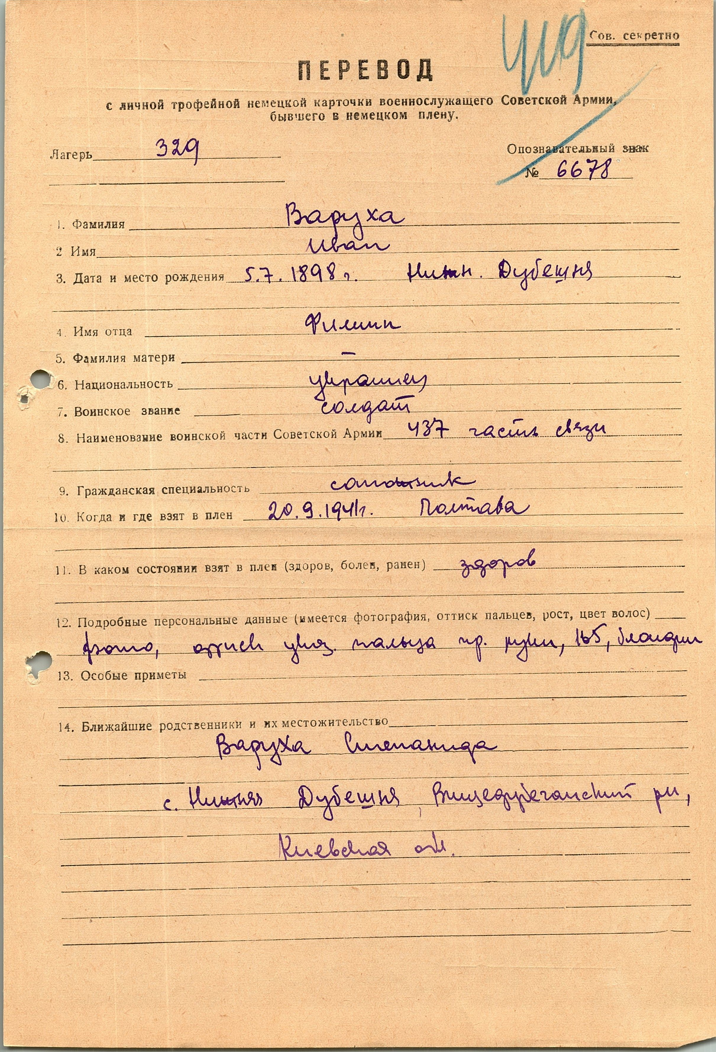 Военнопленные, трофейные карточки. Киевская обл.