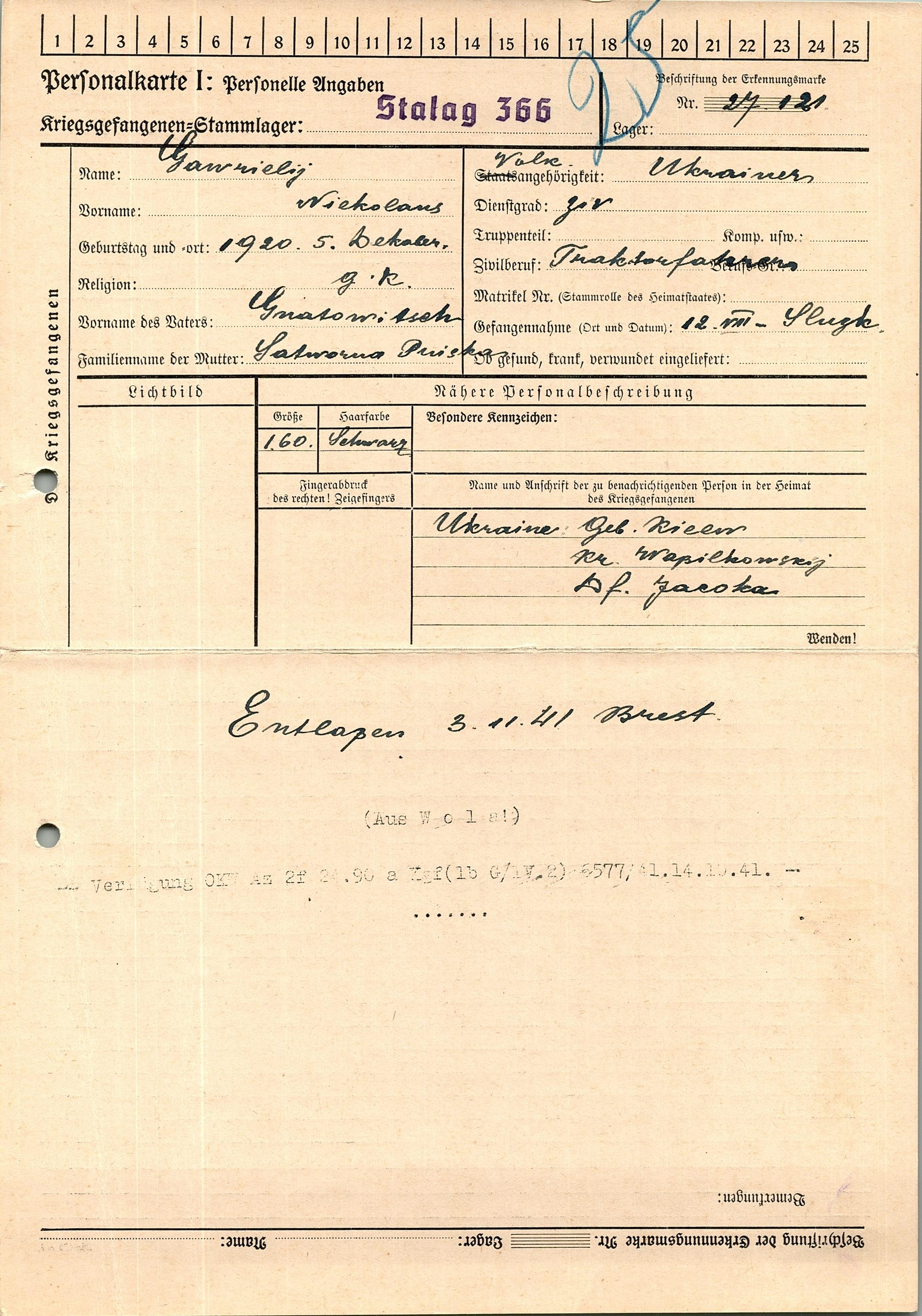 Военнопленные, трофейные карточки. Киевская обл.