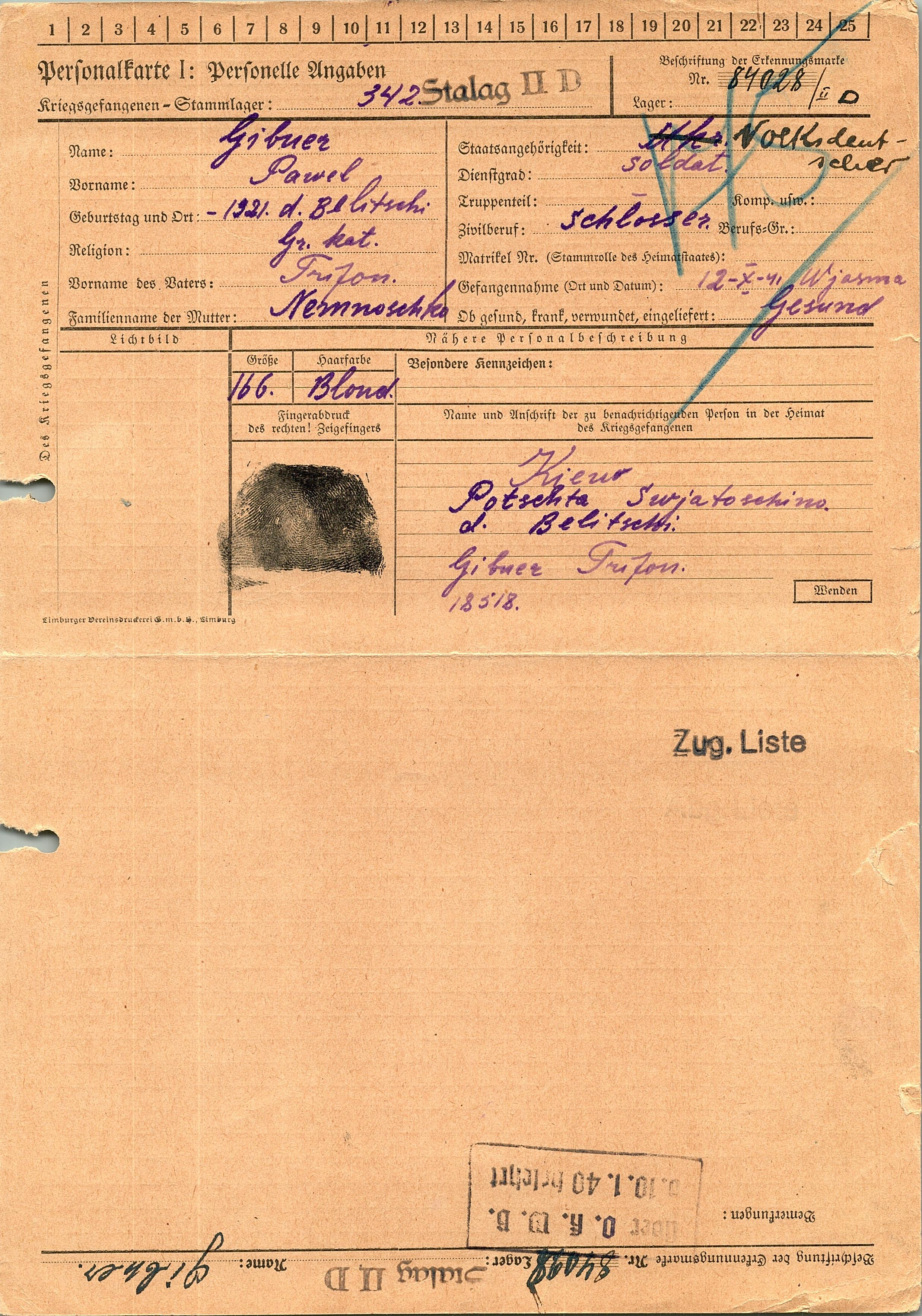 Военнопленные, трофейные карточки. Киевская обл.