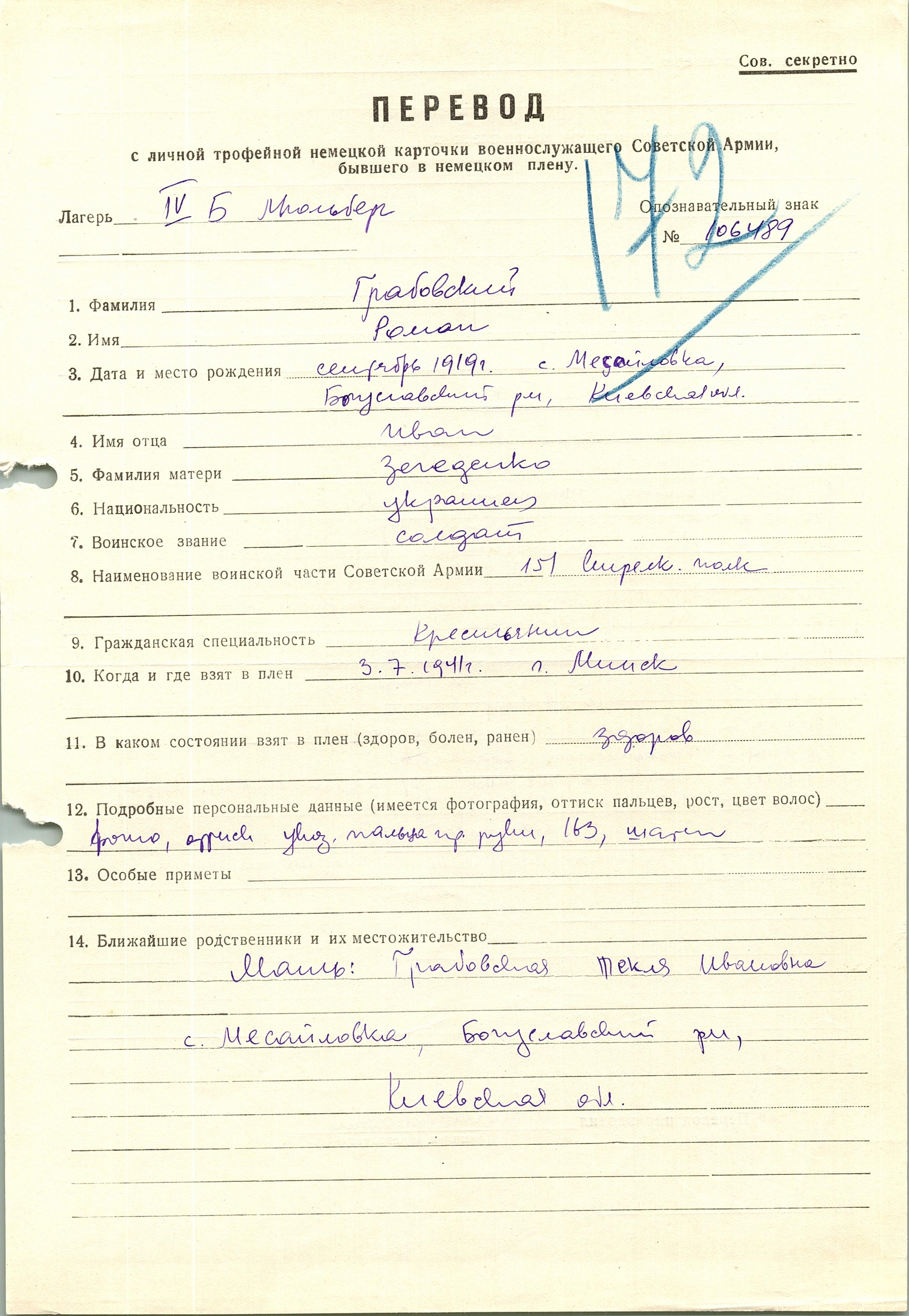 Военнопленные, трофейные карточки. Киевская обл.