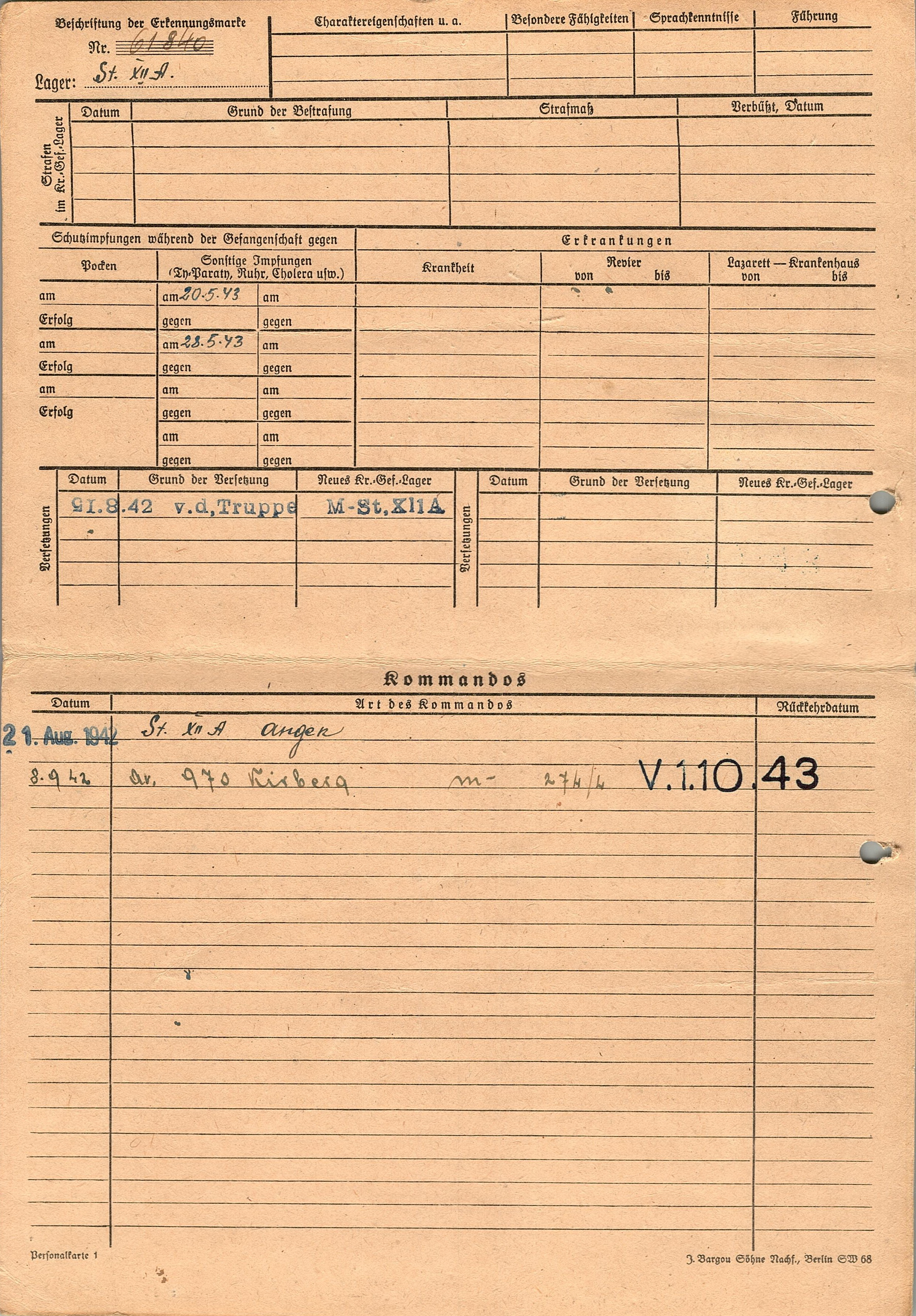 Военнопленные, трофейные карточки. Киевская обл.