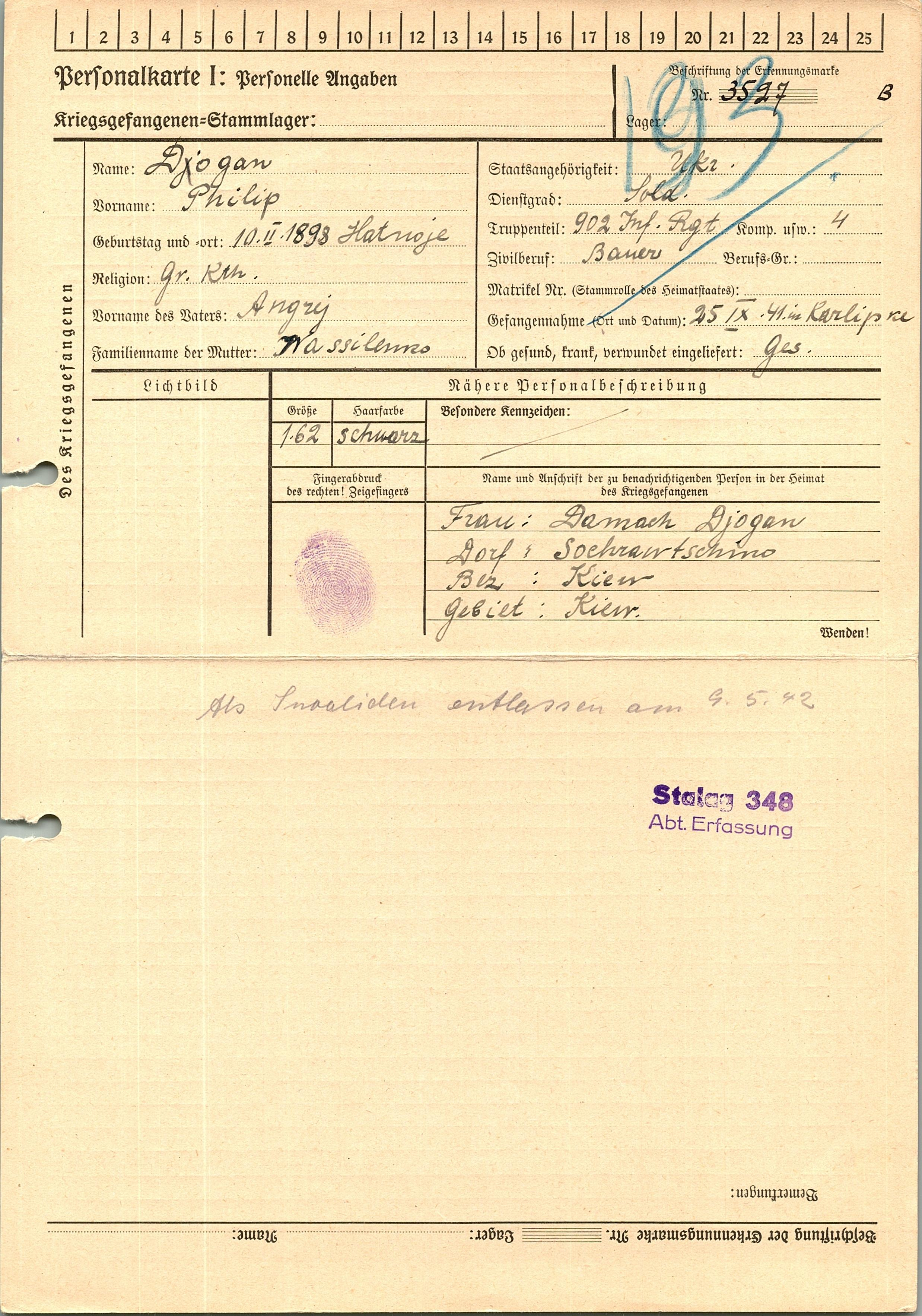 Военнопленные, трофейные карточки. Киевская обл.