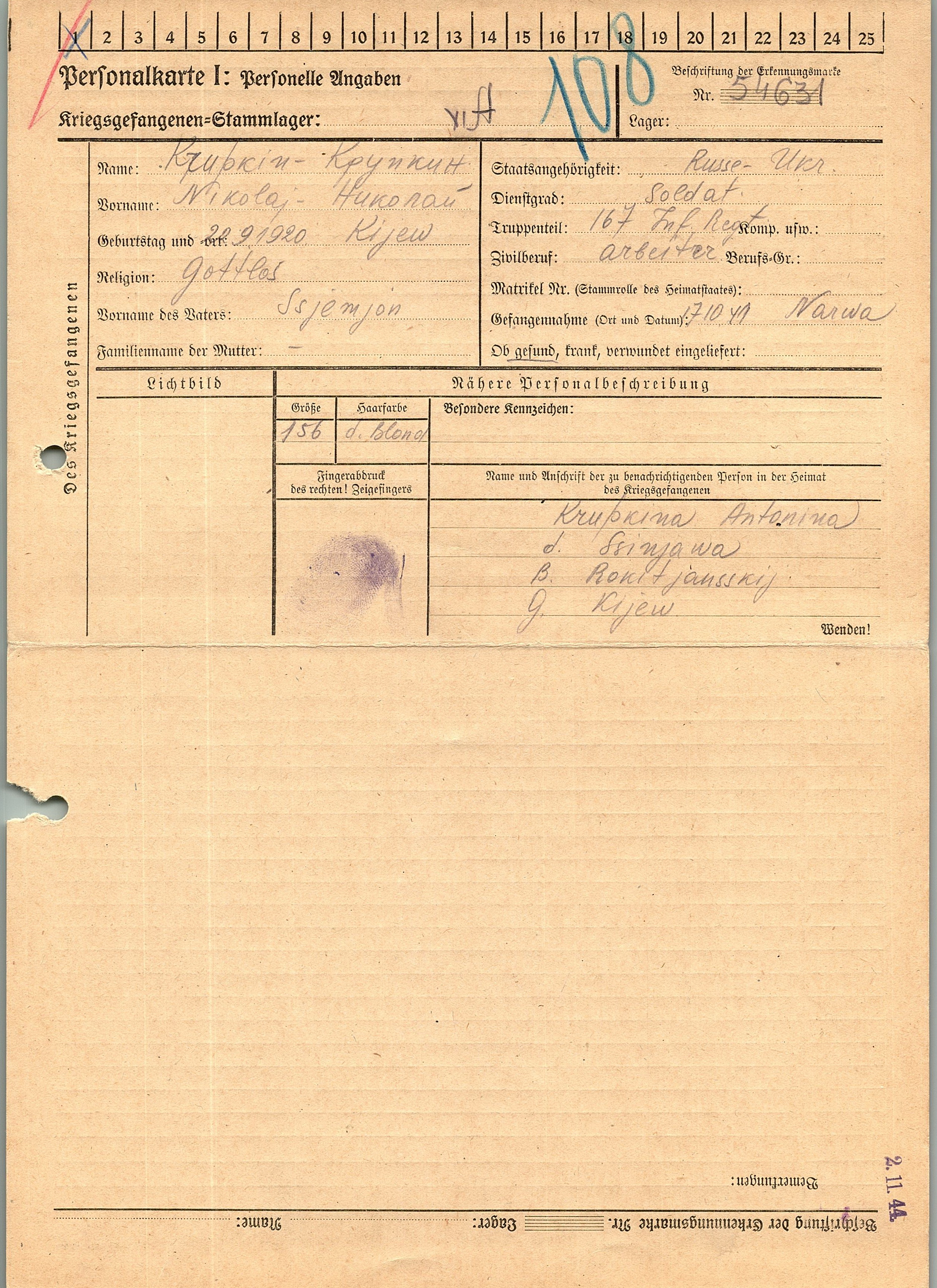 Военнопленные, трофейные карточки. Киевская обл.