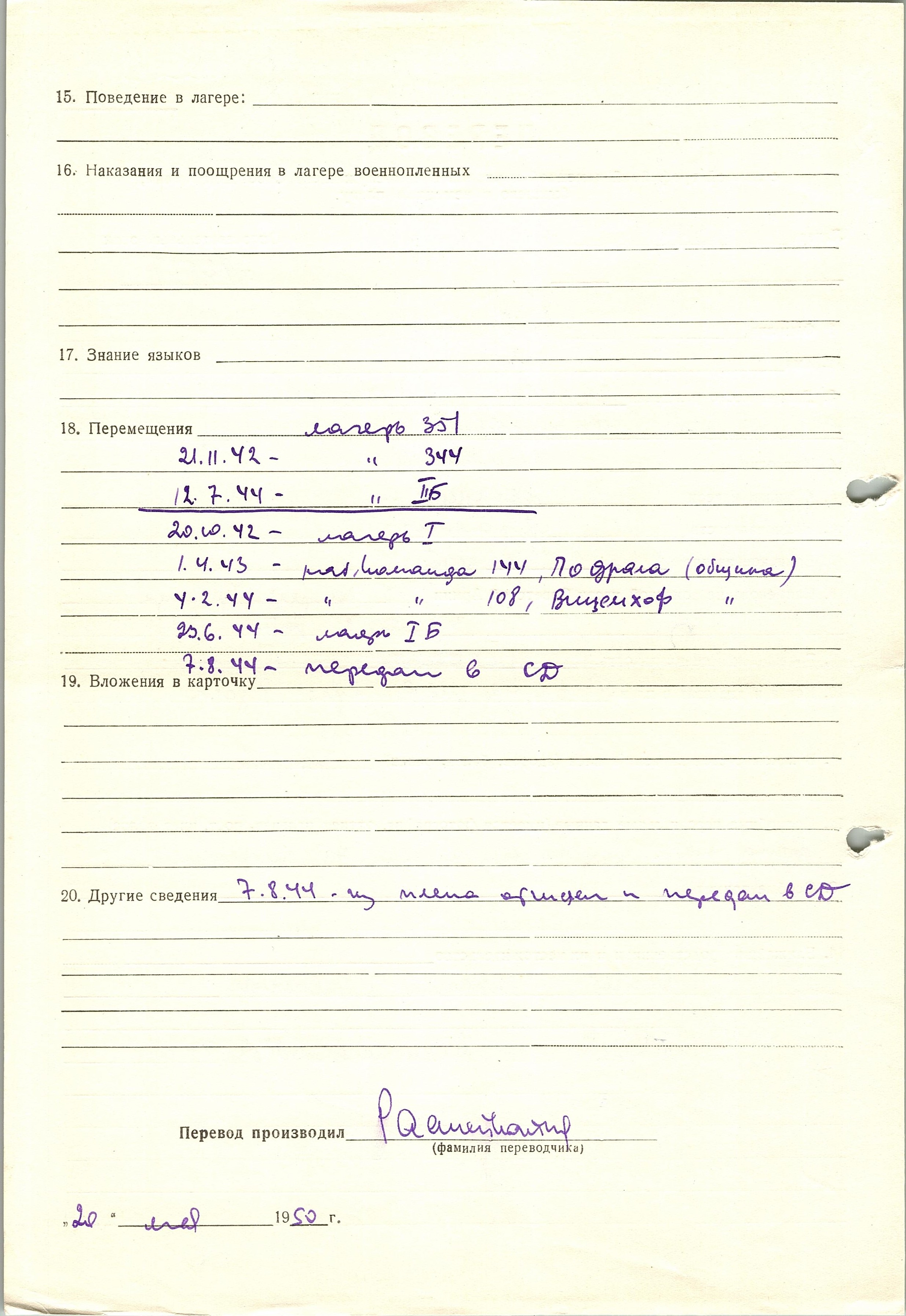 Военнопленные, трофейные карточки. Киевская обл.