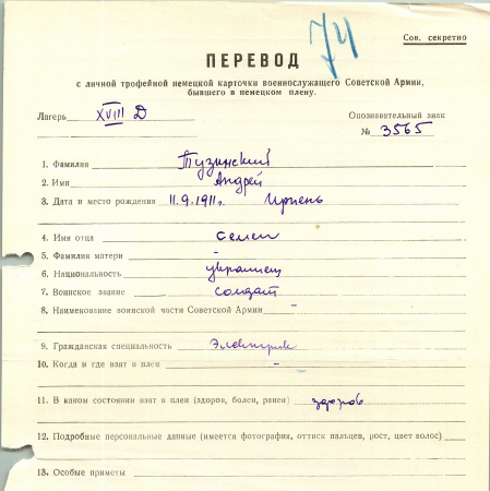 Пузинский (или Тузинский) Андрей Семенович, 11.09.1911 г. р., г. Ирпень. Рядовой. Состоял на денежном довольствии с 26.03.1945 г.Пузинский (или Тузинский) Андрей Семенович, 11.09.1911 г. р., г. Ирпень. Рядовой. Состоял на денежном довольствии с 26.03.1945 г.