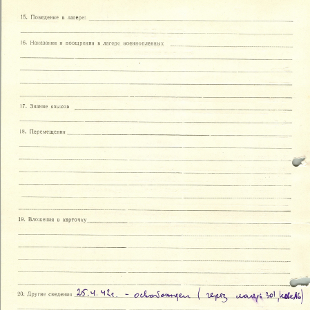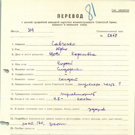 Савченко Юрко (Юрий) Корнеевич, 1909 г. р., с. Королевка, Жашковский р-н, Киевская область. Рядовой, пулеметная часть. Попал в плен 4 июля в с. Колки. 25.04.1942 г. – освобожден (через лагерь 301, Ковель).