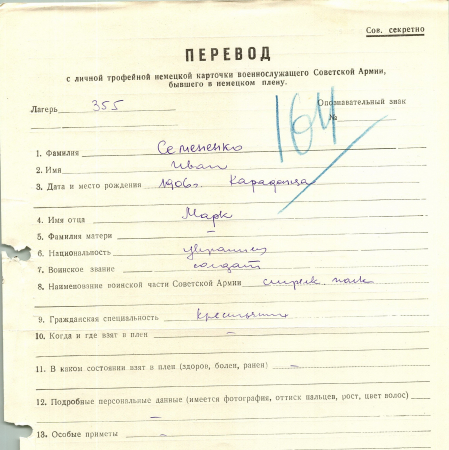 Семененко Иван Маркович, 1906 г. р., с.Карандинцы, Богуславский р-н, Киевская обл. Рядовой стрелкового полка.