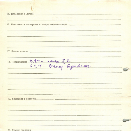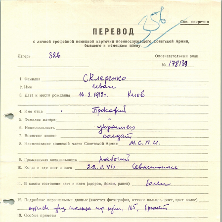 Склеренко Иван Прокофевич, 16.03.1918 г. р., Киев. Рядовой, М.С.П.И. Попал в плен 22.11.1941 г. в Севастополе. 06.02.1945 г. – направлен в Веймар-Бухенвальде.