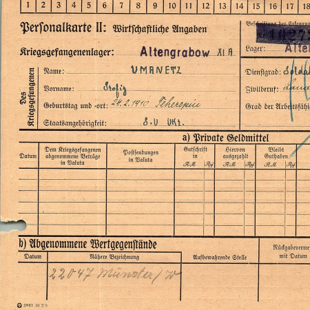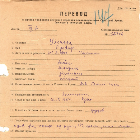 Уманец Профир Антонович, 24.02.1910 г. р., Черепин. Рядовой, 206 санитарная часть. Попал в плен 10.12.1941 г. в Крыму. 27.07.1944 г. – бежал из плена, не пойман.