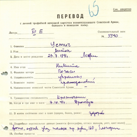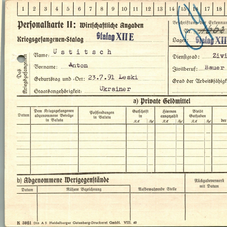 Устич Антон Никитович, 23.07.1891 г. р., с. Лецки. Попал в плен 07.10.1941 г., Дрогобуж. Как гражданский был отчислен из плена и переведен в сельскую биржу труда Восточной Пруссии.