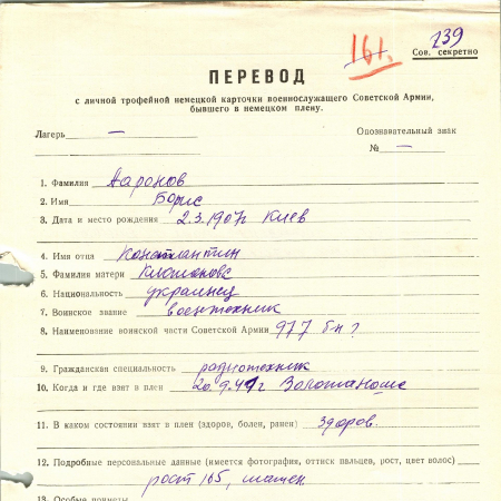 Военнопленные, трофейные карточки. Киевская обл.