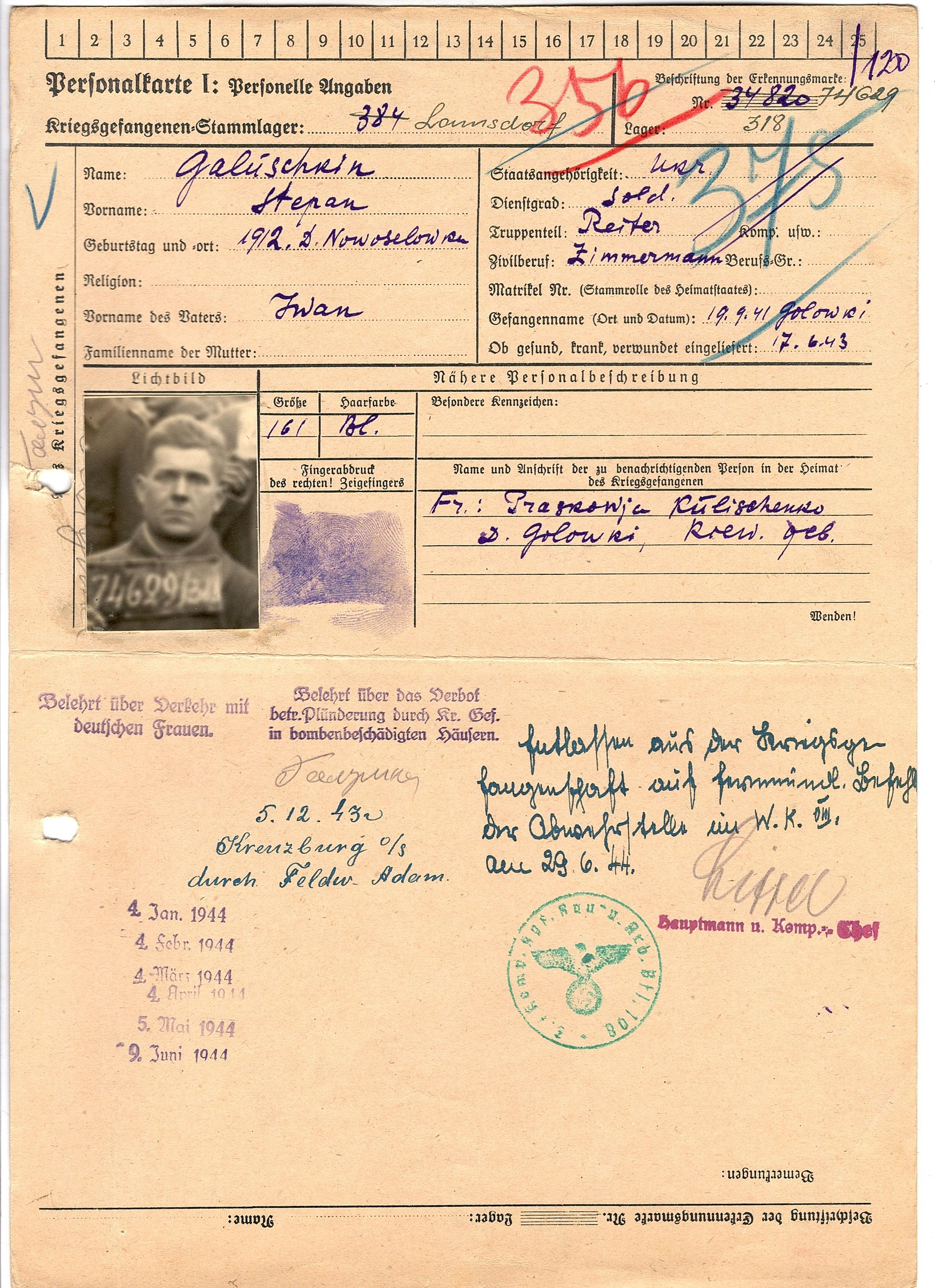 Военнопленные, трофейные карточки. Киевская обл.
