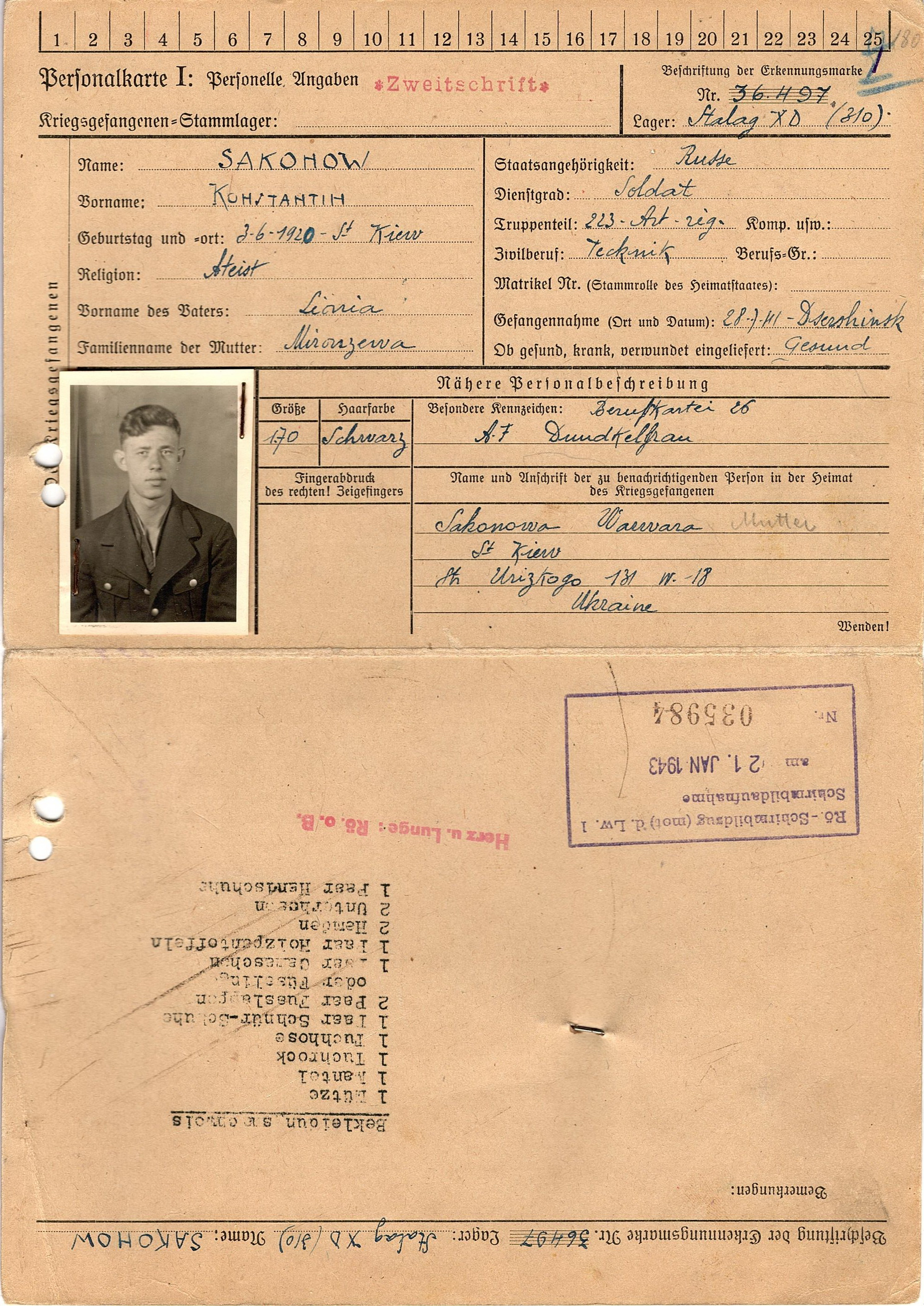 Военнопленные, трофейные карточки. Киевская обл.