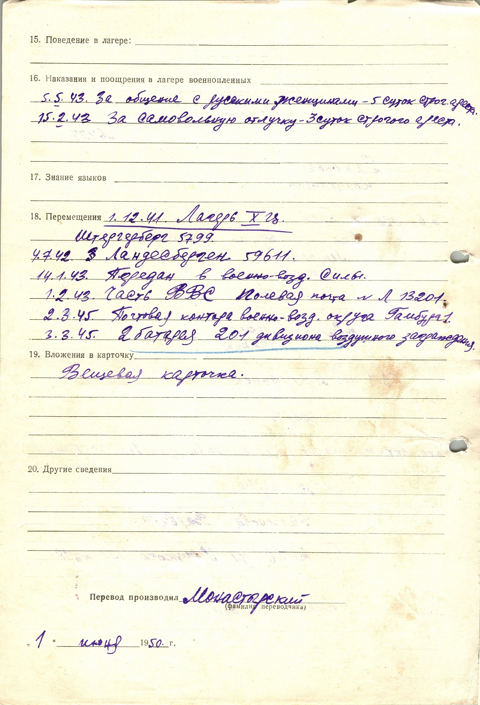 Военнопленные, трофейные карточки. Киевская обл.
