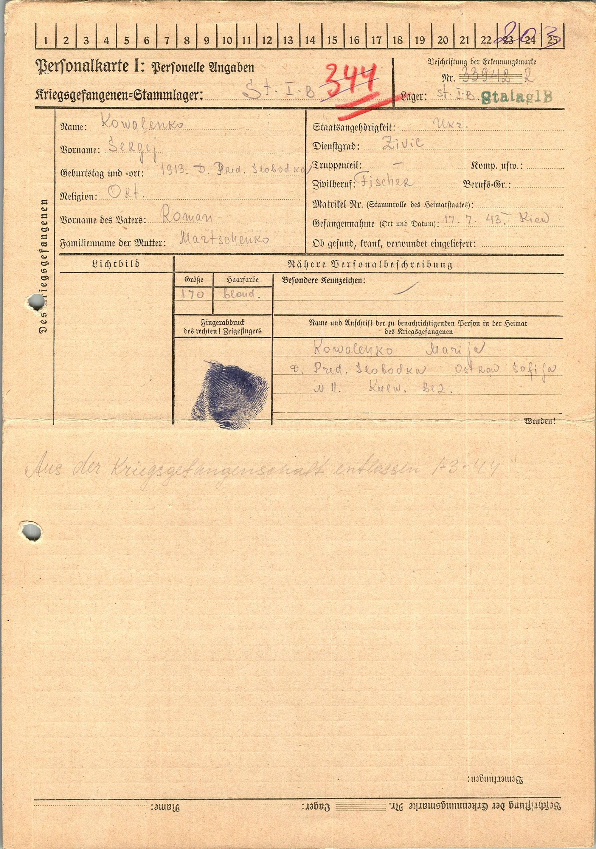 Военнопленные, трофейные карточки. Киевская обл.