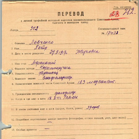 Военнопленные, трофейные карточки. Киевская обл.