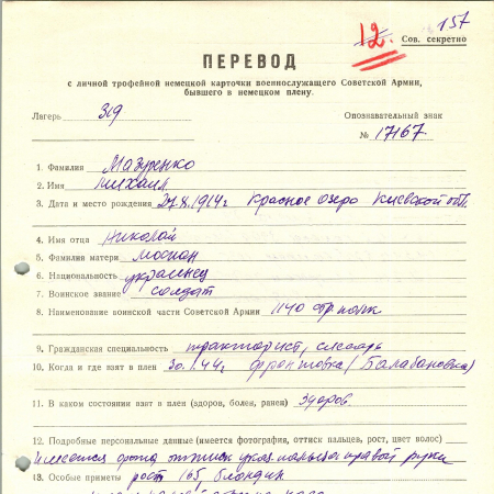 Военнопленные, трофейные карточки. Киевская обл.