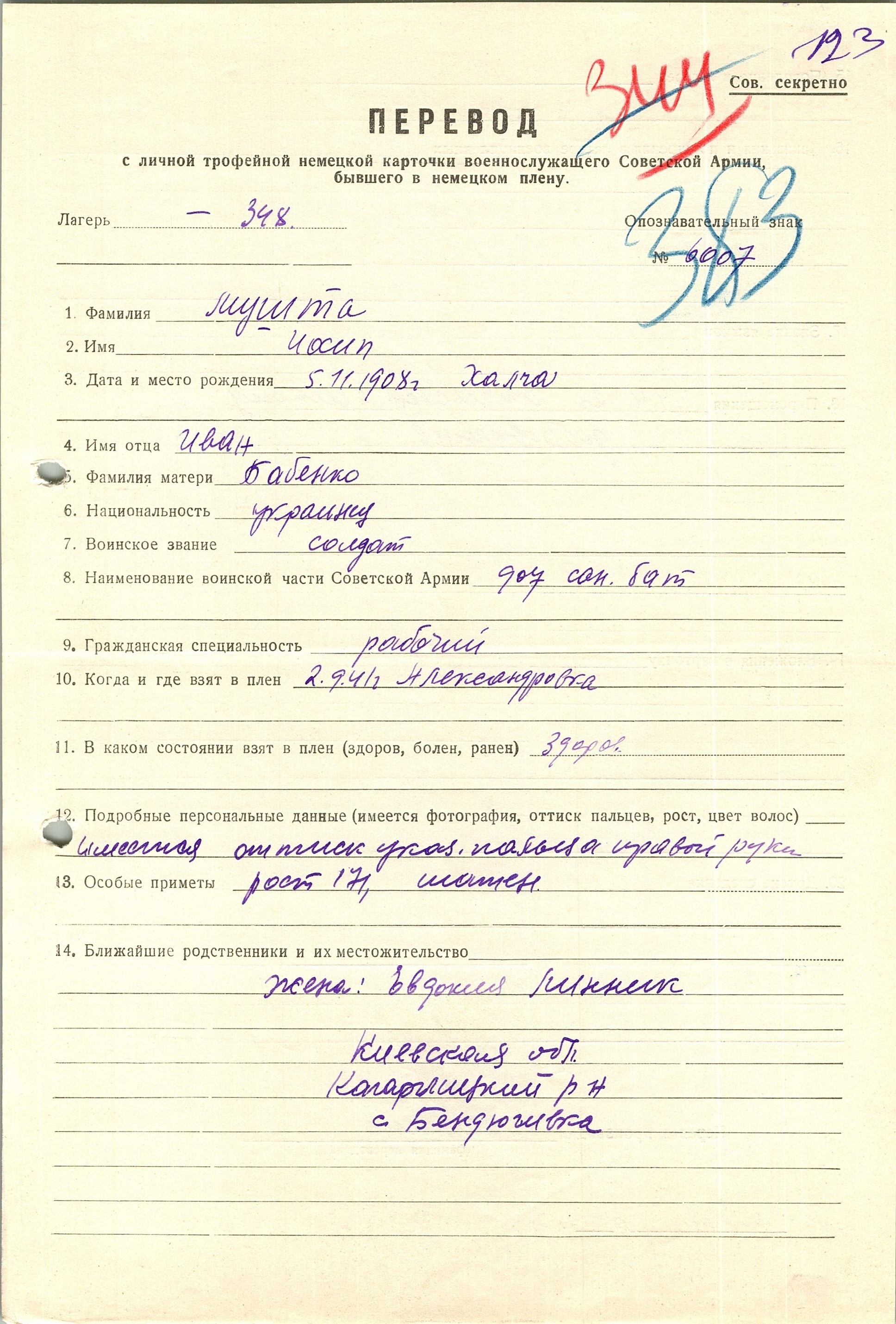 Военнопленные, трофейные карточки. Киевская обл.