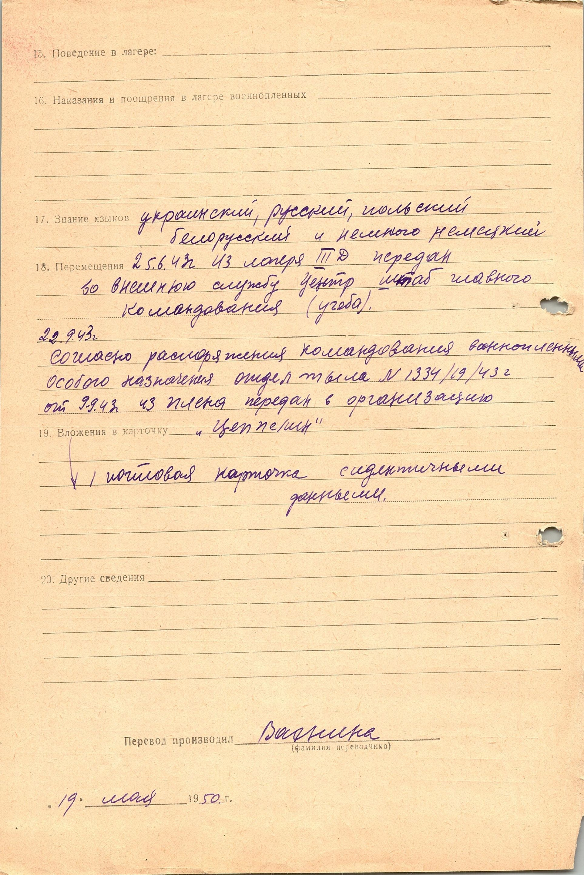 Военнопленные, трофейные карточки. Киевская обл.