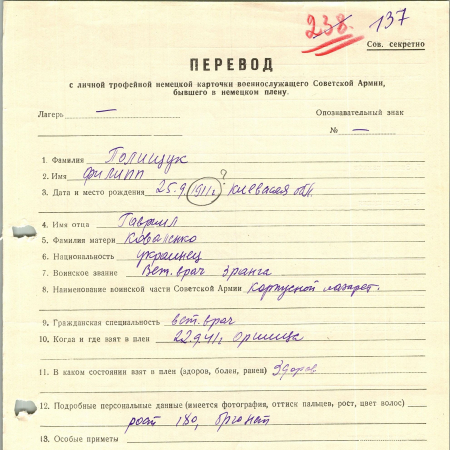 Военнопленные, трофейные карточки. Киевская обл.