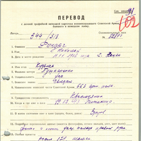 Военнопленные, трофейные карточки. Киевская обл.