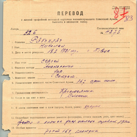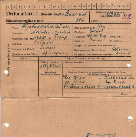 Военнопленные, трофейные карточки. Киевская обл.