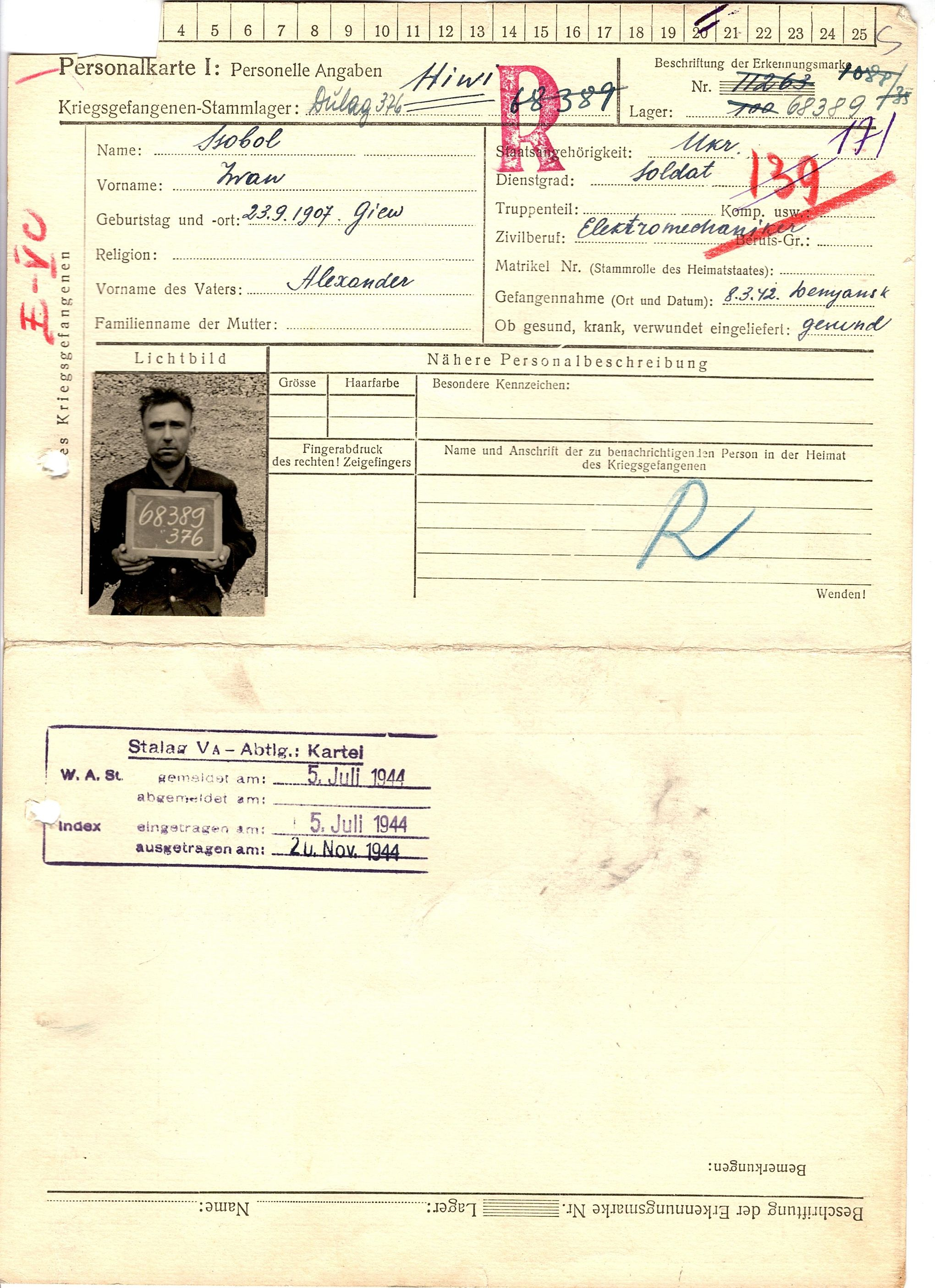Военнопленные, трофейные карточки. Киевская обл.
