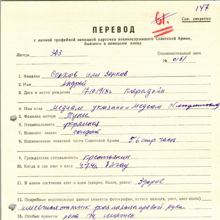 Военнопленные, трофейные карточки. Киевская обл.