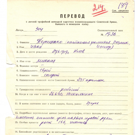 Военнопленные, трофейные карточки. Киевская обл.