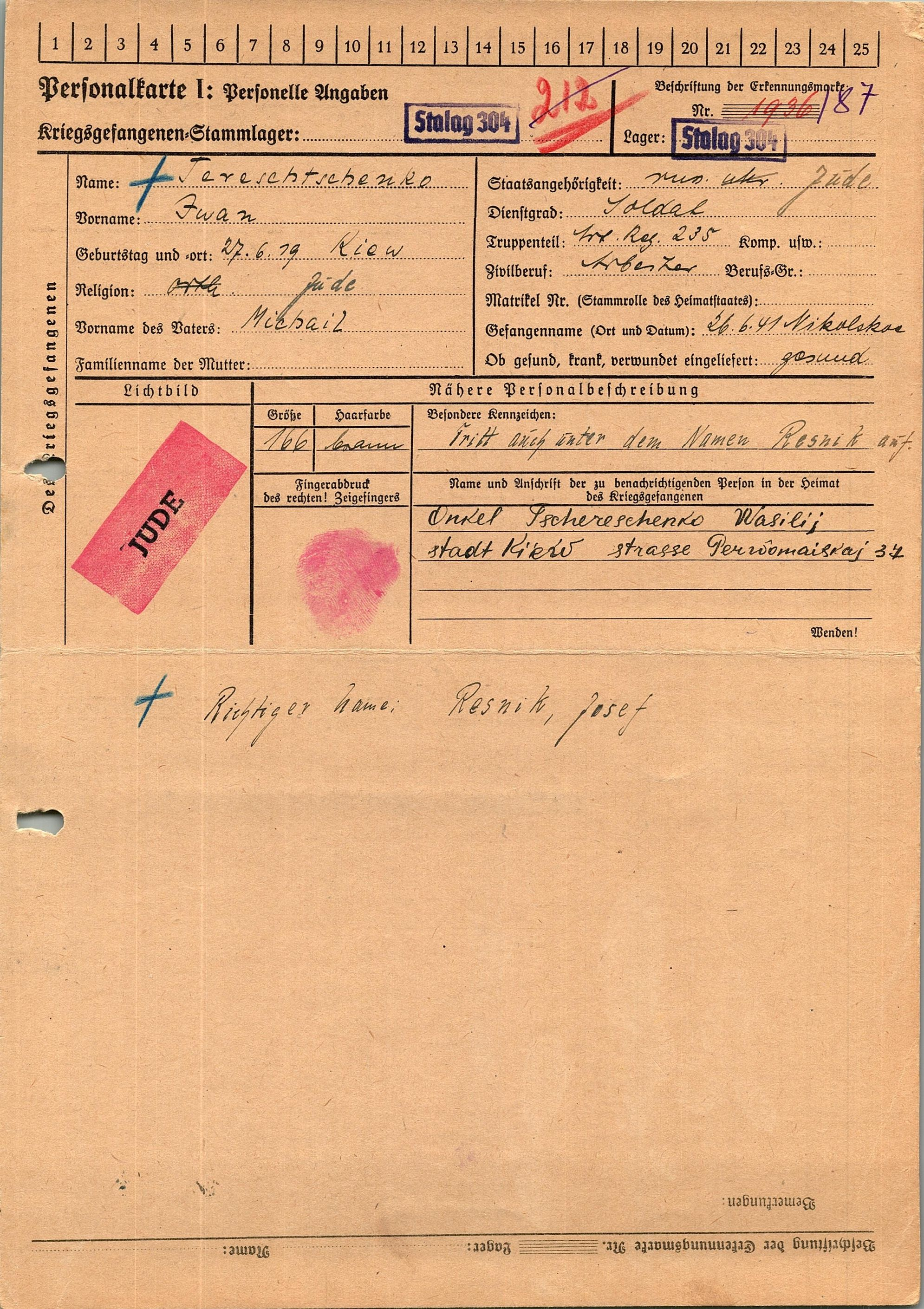 Военнопленные, трофейные карточки. Киевская обл.