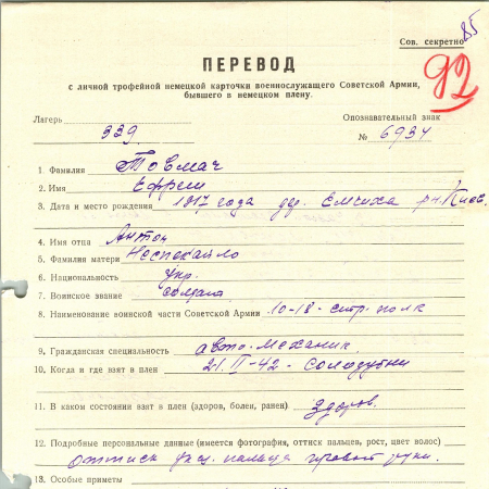 Военнопленные, трофейные карточки. Киевская обл.