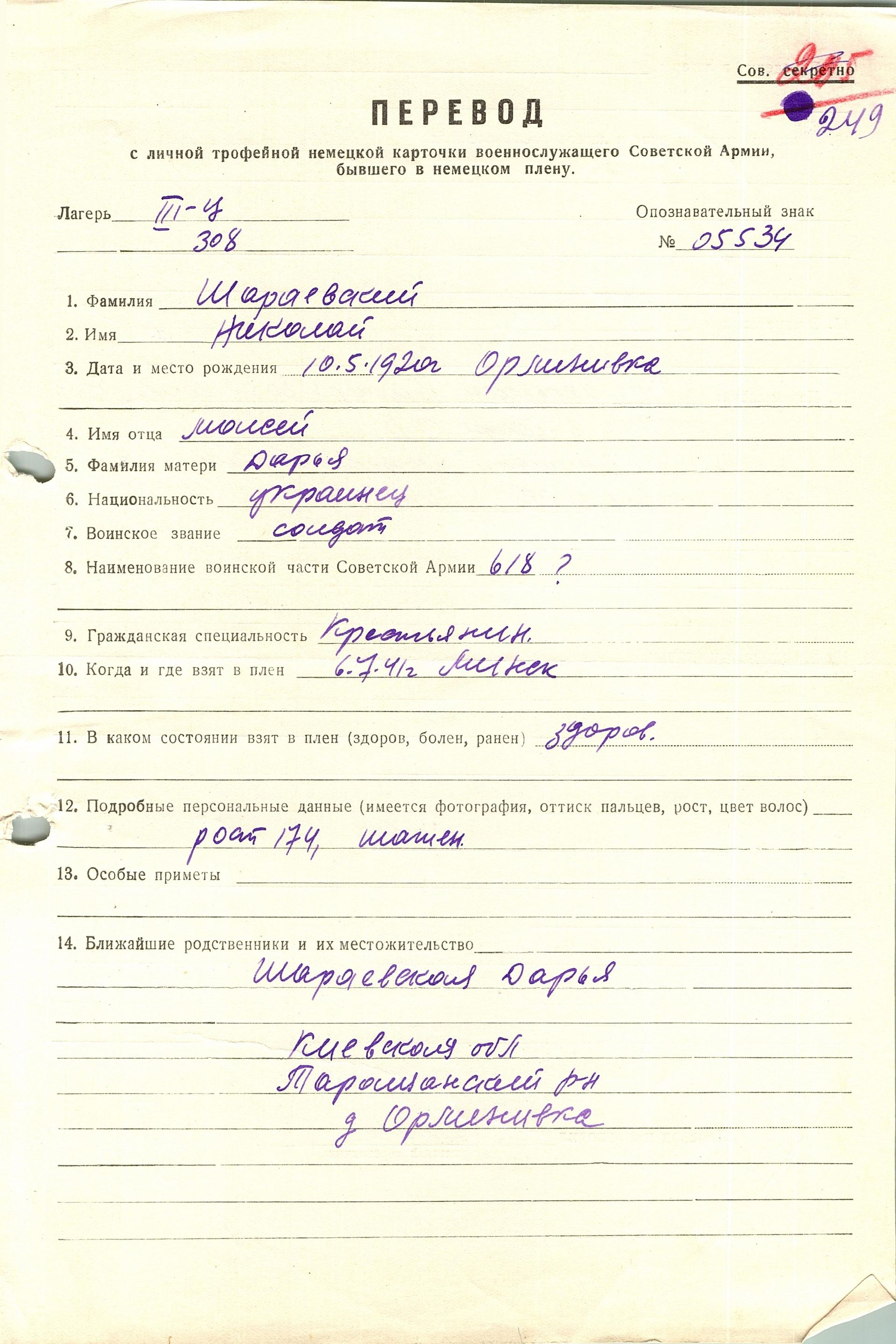 Военнопленные, трофейные карточки. Киевская обл.