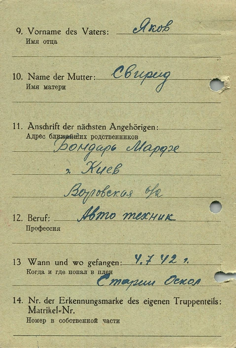 Военнопленные, трофейные карточки. Киевская обл.