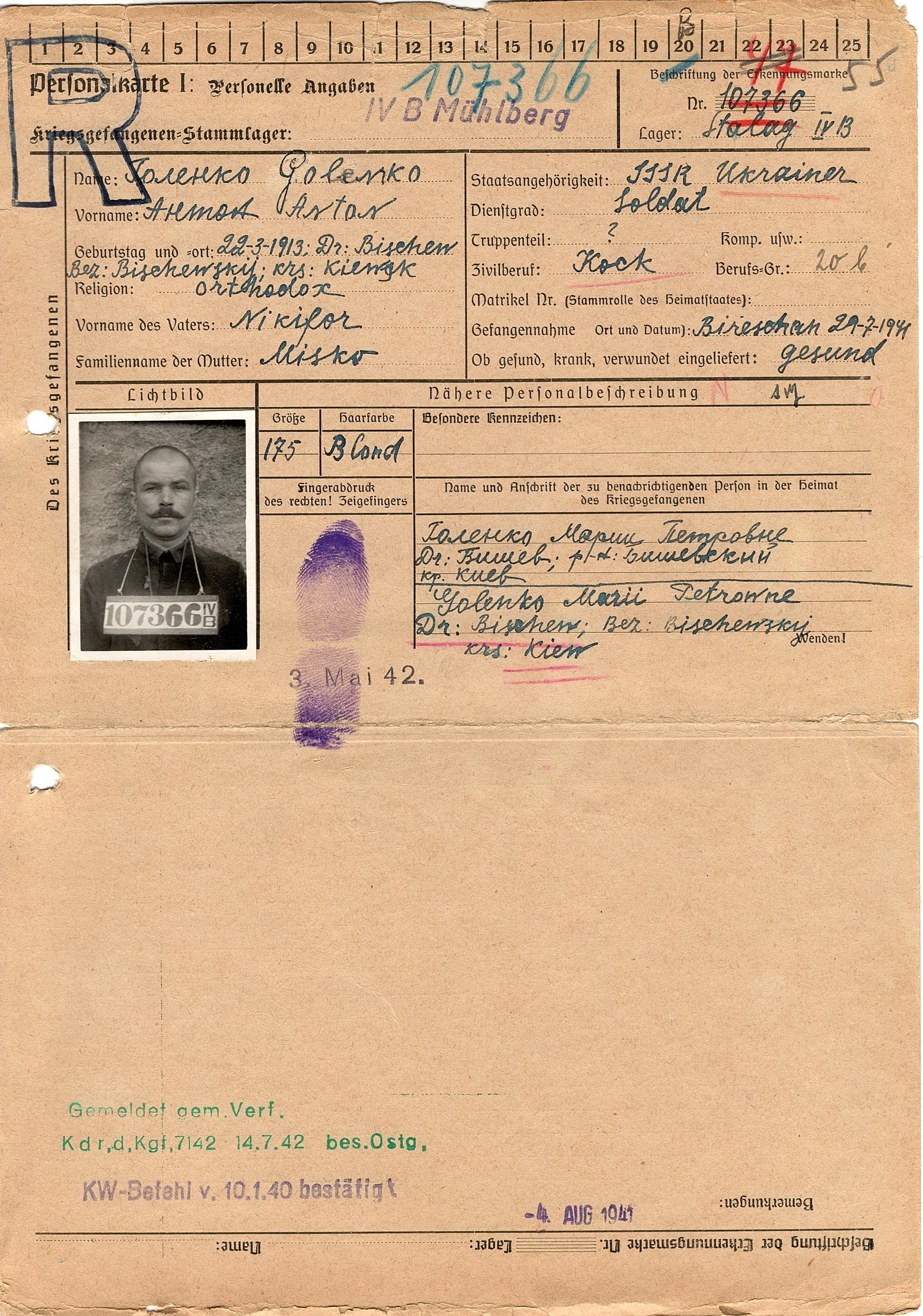 Военнопленные, трофейные карточки. Киевская обл.