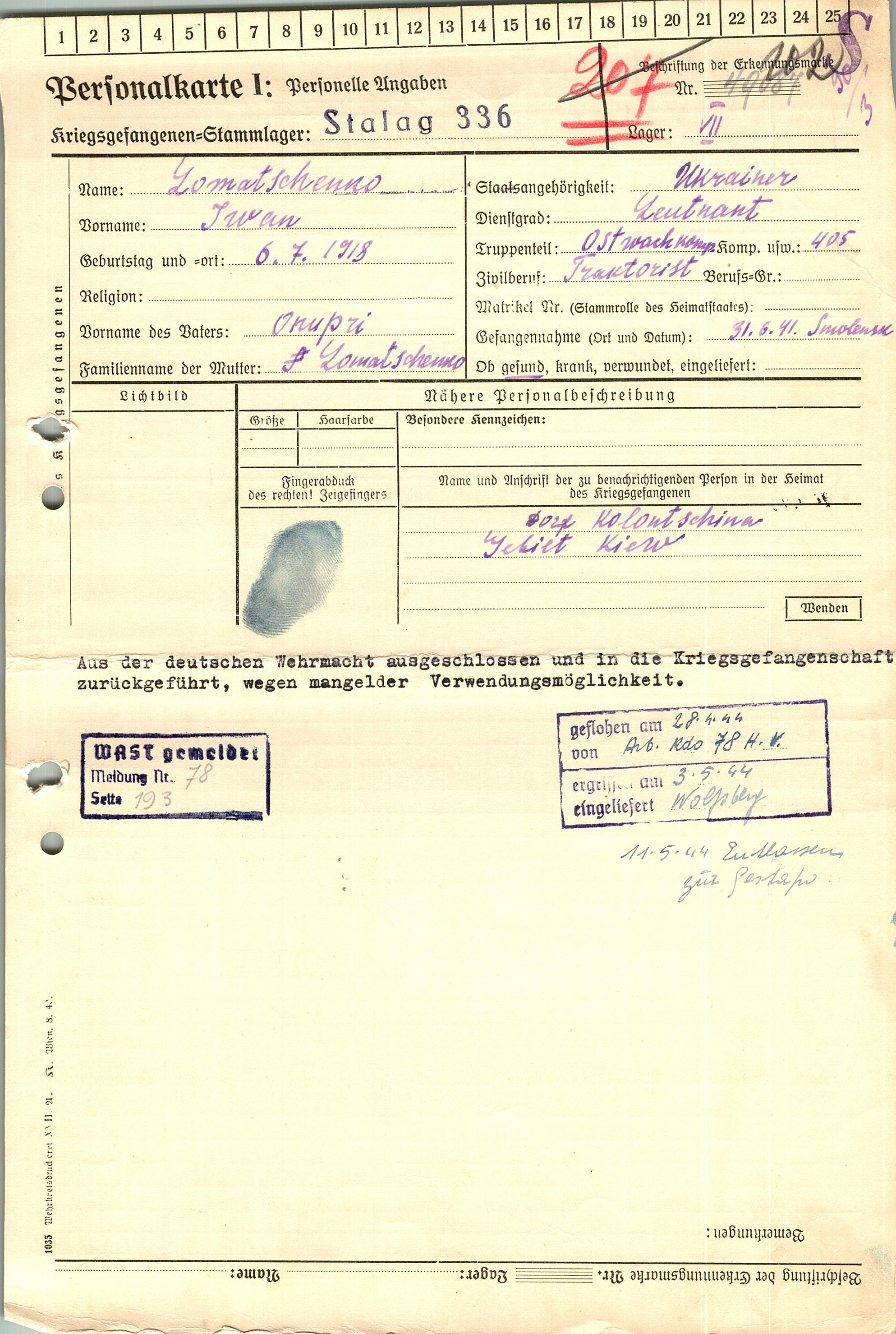 Военнопленные, трофейные карточки. Киевская обл.