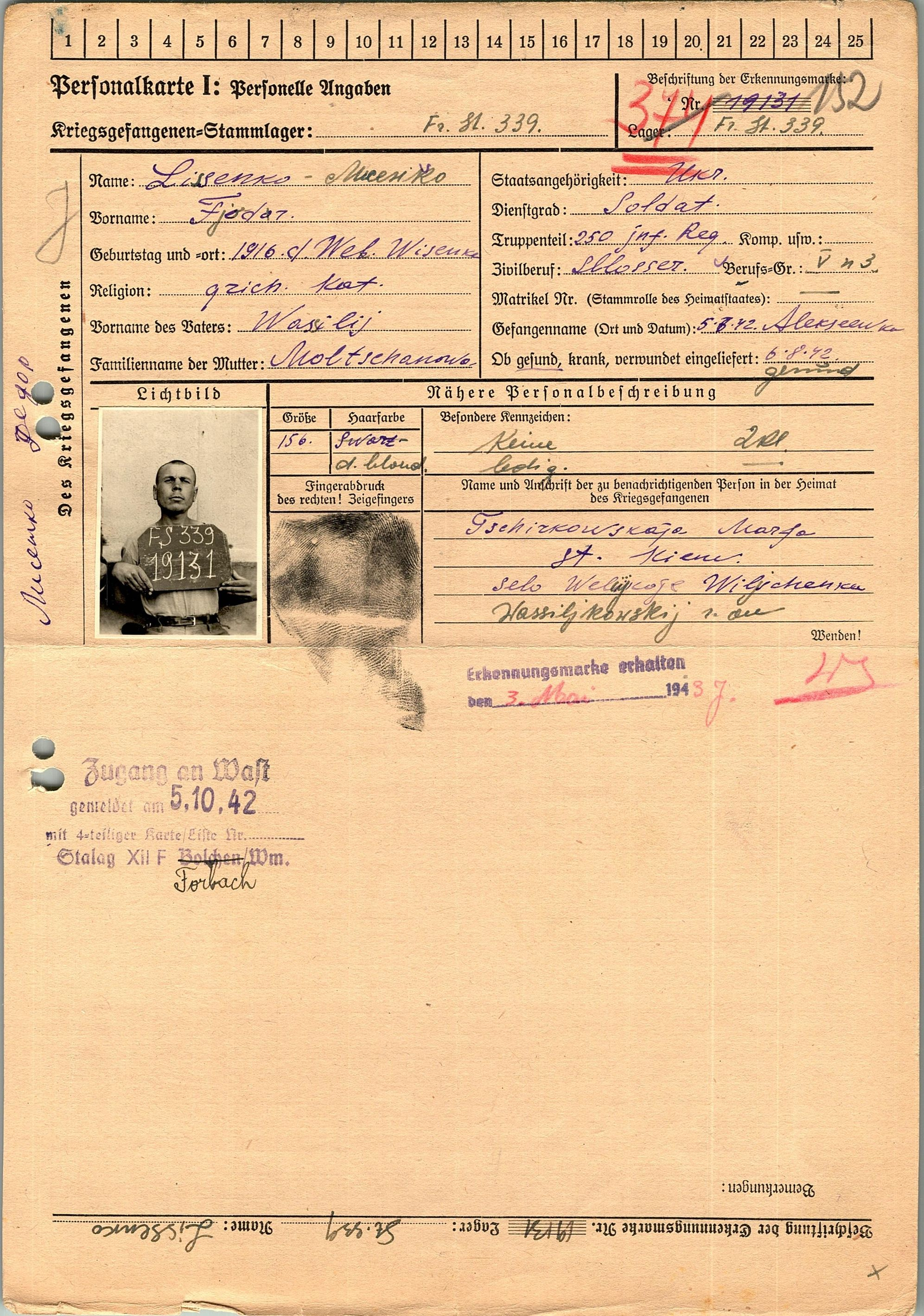 Военнопленные, трофейные карточки. Киевская обл.