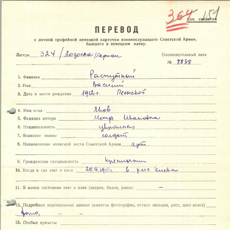 Военнопленные, трофейные карточки. Киевская обл.